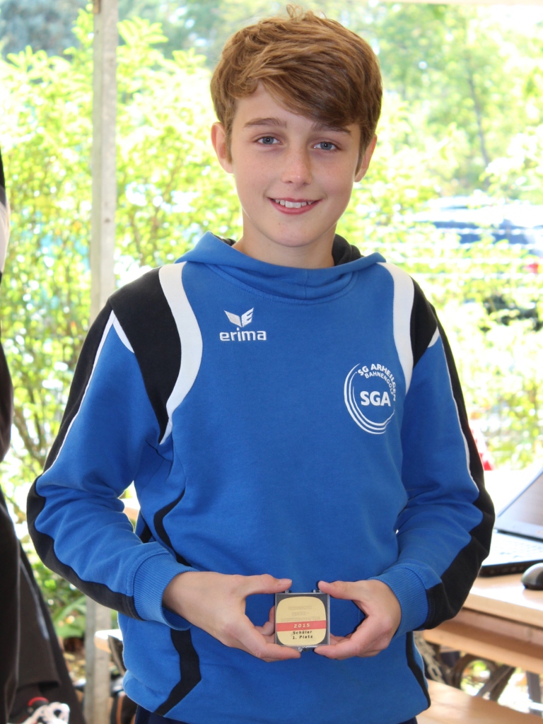 In ausgezeichneter Verfassung präsentierten sich die HBSJ Aktiven bei der DJM 2015 in Tuttlingen. Die Mehrzahl der Treppchenplätze gingen an die Vertreter aus unserem Landesverband. Und nicht nur die zu den Favoriten zählenden Jugendlichen aus Arheilgen konnten ihrer angedachten Rolle gerecht werden, sondern auch im Schülerbereich gibt es erfreuliches zu berichten. Die ersten beiden Tage einer DJM stehen vor allem im Zeichen der Mannschaftswettbewerbe. Vor allem hier wird allerdings auch der Verlust an Nachwuchsspielern in unserer Sportart deutlich. Gerade mal 4 Schülermannschaften gingen noch an den Start. In einem Herzschlagfinale sicherten sich die Schüler vom 1.MGC Mainz (732) mit einem Schlag Vorsprung vor der Vertretung vom MSK Neheim-Hüsten (733) den Titel. Dritter wurde der MGF Magdeburg (761). Eine hessische Mannschaft war nicht am Start. Immerhin 9 Jugendmannschaften stellten sich dem Wettbewerb bei den Jugendmannschaften. Dort feierte die Vertretung der SG Arheilgen (660) einen Start-Ziel Sieg . Zu den lange bewährten Kräften Laura Heckel, Tim Adamczyk und Ingmar Heipel war zu Beginn der Saison Thomas Sieber aus Olching gestossen. Er präsentierte sich auf dieser DM als wesentliche Verstärkung und bestätigte seine gute Form von der DM der Allgemeinen Klasse vor Wochenfrist. Bei der Mannschaftsaufstellung hatte man sich für die drei männlichen Teilnehmer in der Startformation entschieden. Hätte Ersatzspielerin Laura Heckel im Aufgebot gestanden, wäre der Vorsprung auf den Zweitplazierten 1.MGC Mainz (680) noch deutlicher als 20 Schläge gewesen. Um den dritten Rang (681 Schläge) gab es ein Mannschaftsstechen, welches der 1.BGC Leipzig gegen den BSV Inzlingen für sich entschied. In den Einzelwettbewrben gibt es bei der DJM viele Titel zu vergeben. Neben dem Kombi-Titel werden auch die Abteilungsmeister Beton und Miniatur ermittelt. Hier gab es diesmal kein Treppchen ohne HBSJ-Teilnehmer.